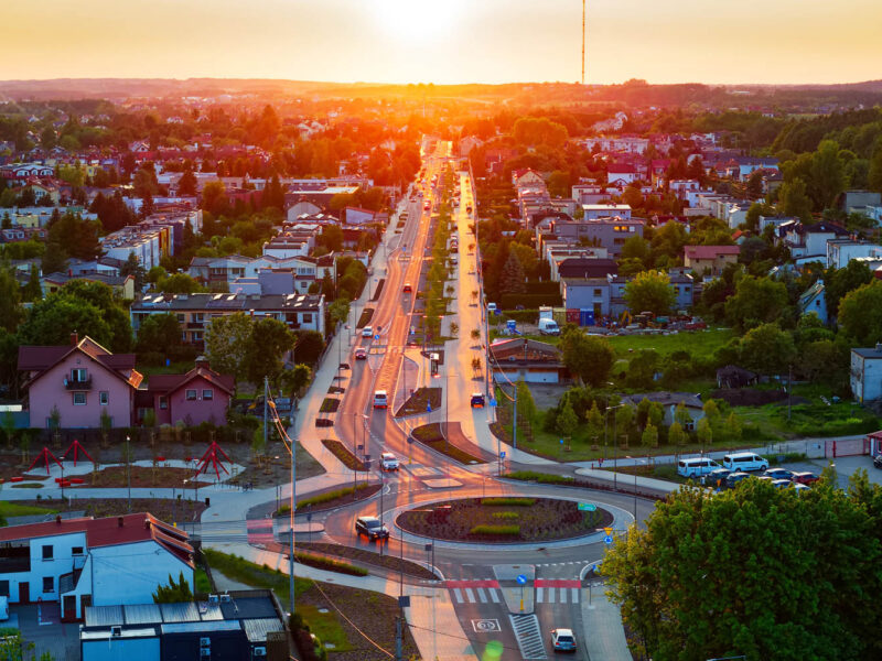 Zaawansowane ujęcia z dronów, samolotów i helikopterów – zdjęcia i filmy lotnicze miast, inwestycji i krajobrazów. Realizacje dzienne i nocne.