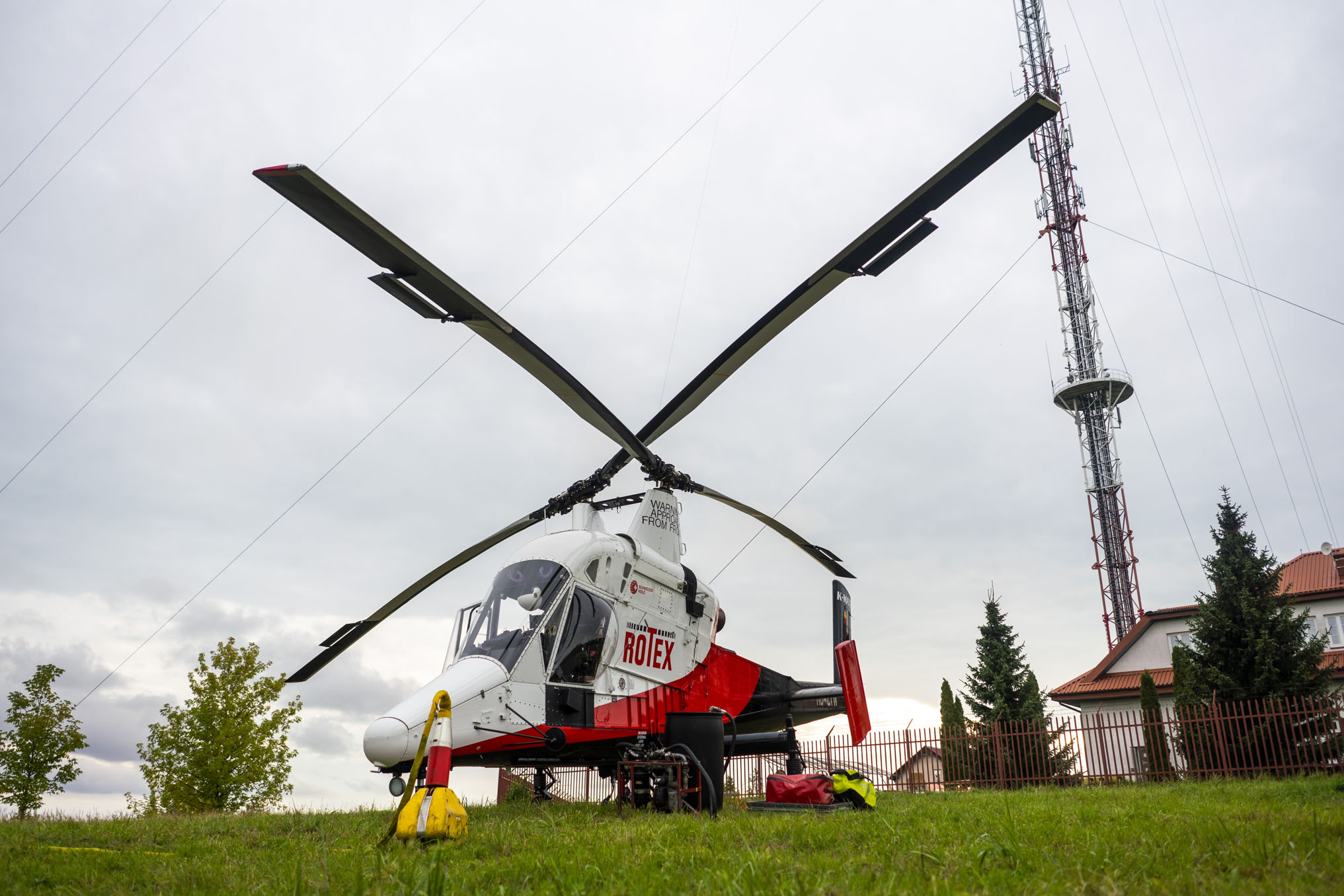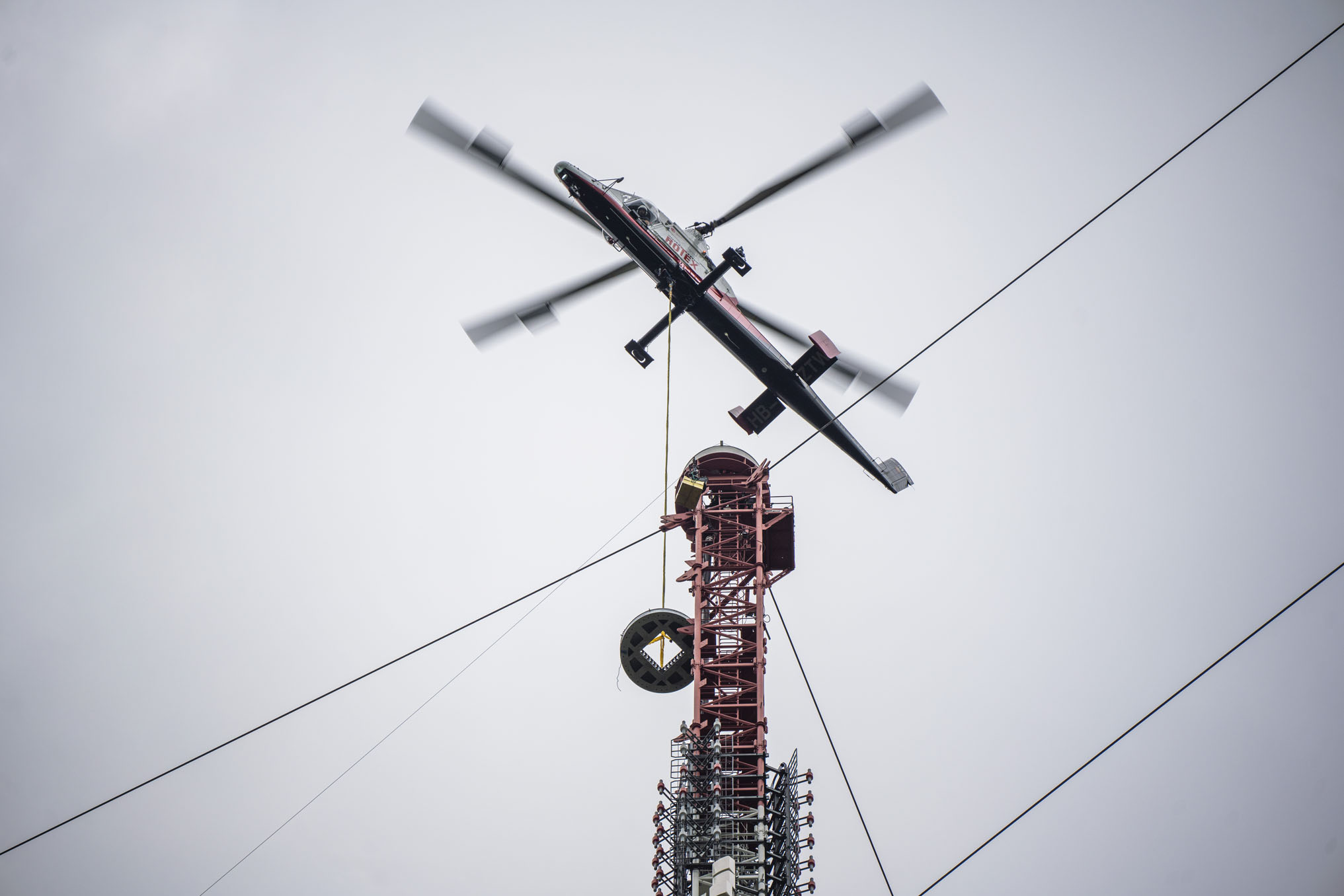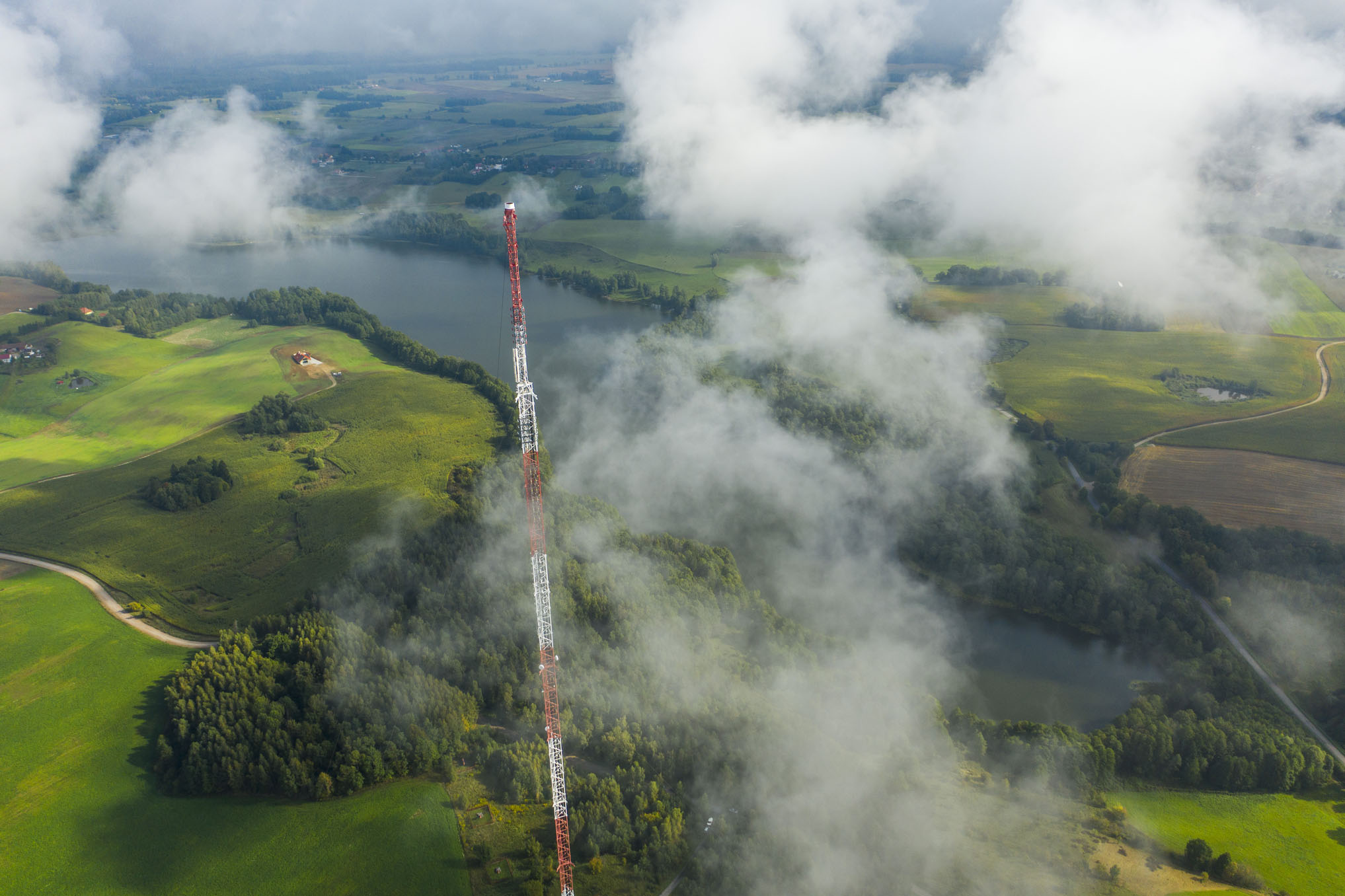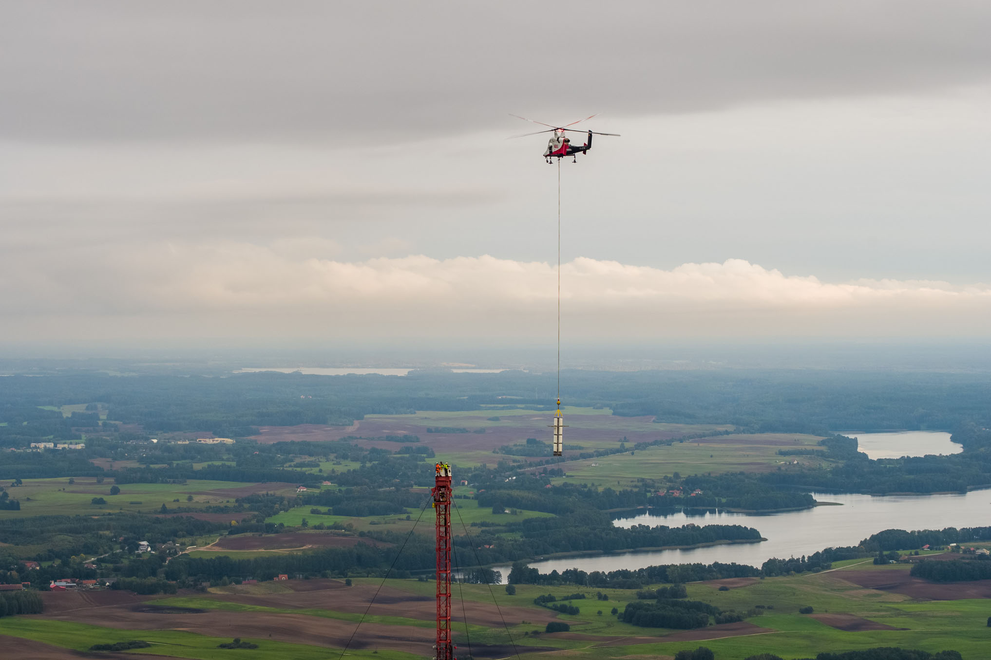 Realizacja materiałów filmowych oraz fotograficznych z ziemi oraz z drona dokumentująca wymianę anteny na czubku ponad 300-metrowego masztu w Giżycku-Miłkach.